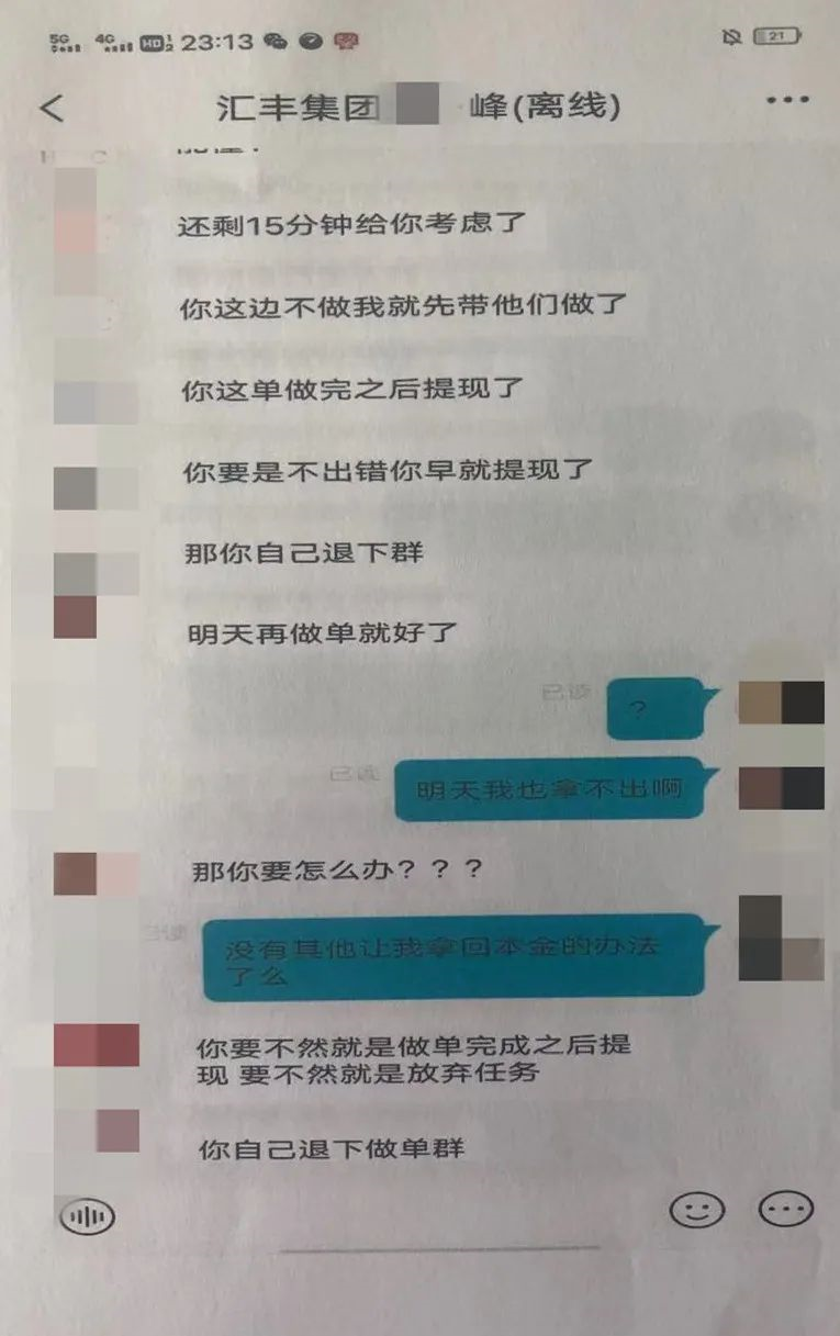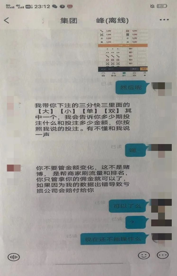 见受害人上钩,这时骗子就会要求刷“二联单、三联单”,等受害人接连支付数千元后,再以“操作错误”、“任务未完成”、“卡单”等各种借口,拒绝支付受害人垫付资金和佣金,并不断要求受害人继续刷单,表示只有不断刷单才能拿到之前的货款和佣金。如受害人拒绝继续刷单,将被踢群。