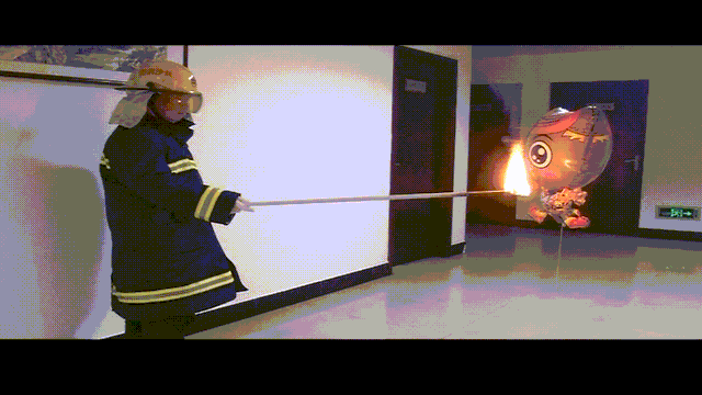 实验过程中,消防员手持火把慢慢靠近氢气球,我们可以发现,氢气球被烧破后,内部气体快速燃烧了起来。