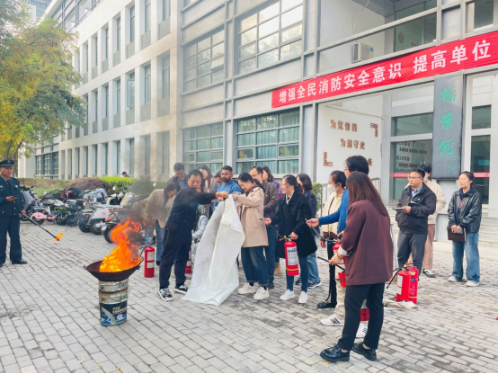 保卫处消防科杨俊康及中房物业公司孙队长结合实际向全体人员讲授了消防基础知识,具体学习了学校针对消防安全提出的“四个能力”建设要求、“一懂三会”具体内容,发生火灾后如何追责、如何承担刑事责任,以及各类消防器材的性能。之后,杨老师重点强调了发生火情时的报警流程,讲解了单位楼宇内配备的各种消防设施以及消防器材的使用方法。在消防安全应急演练时,全体人员积极参与,认真学习,了解了火灾发生时的处置流程以及逃生时应当注意的问题,实际操作了灭火器、灭火毯等消防器材。