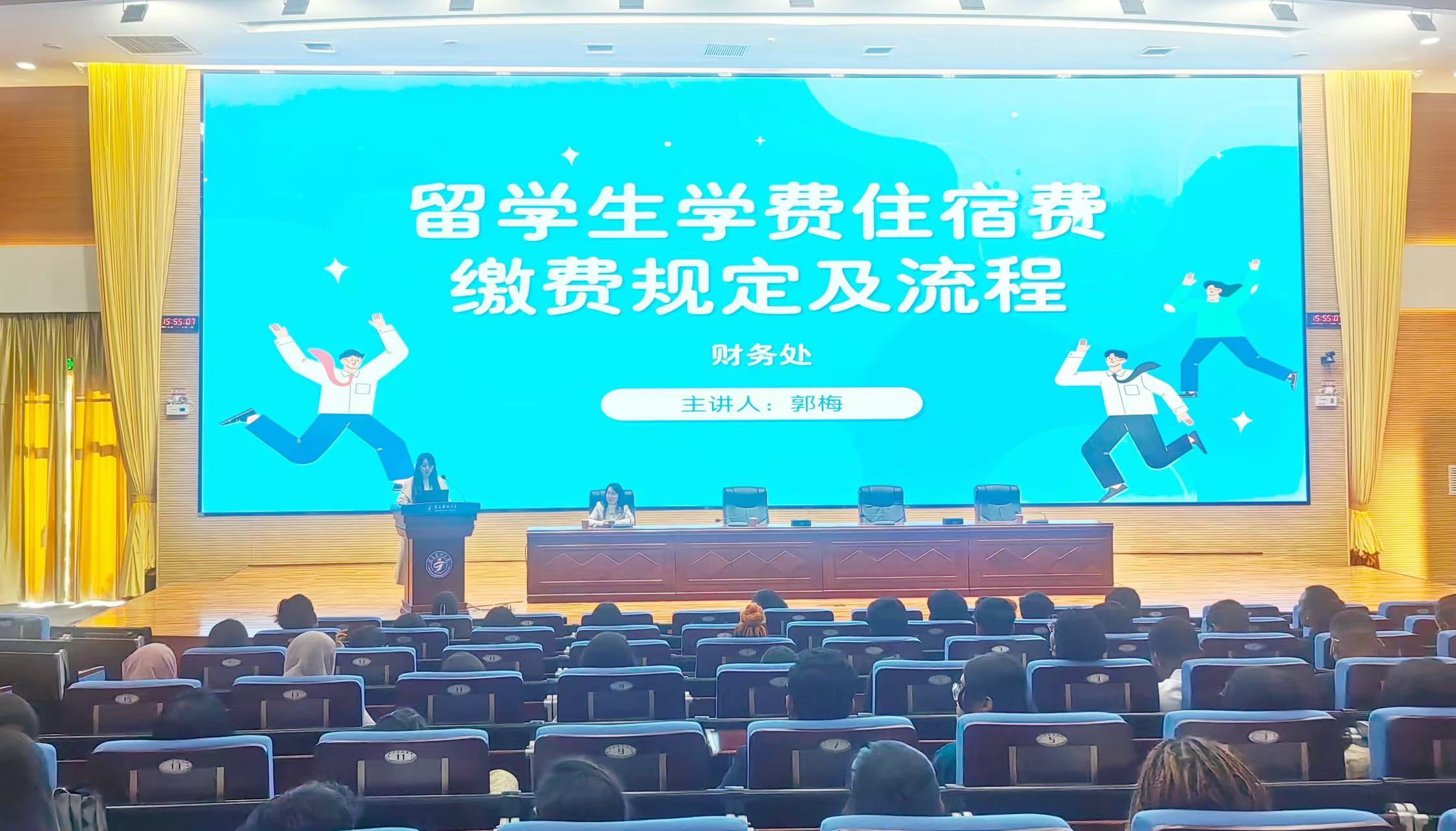 为保障学校收费工作顺利开展,为留学生提供更加快速便捷的缴费服务,10月28日下午,财务处在2024级留学生开学典礼的学生教育环节对留学生学费住宿费的相关规定和缴费流程进行了宣讲,国际教育学院部分老师和2024级留学生100余人参加。