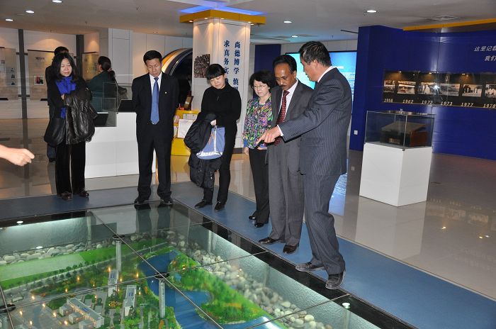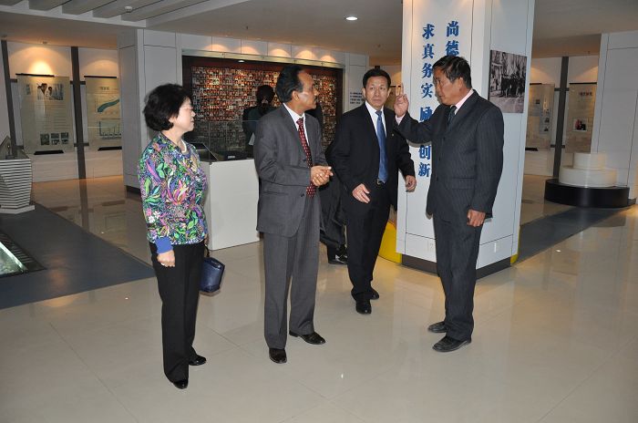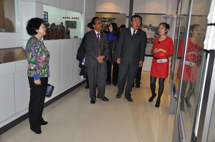 尼泊尔驻华大使坦卡·普拉萨德·卡基一行3人于2011年11月3日下午在田淑卿副书记和杨银学院长的陪同下参观了校史馆
