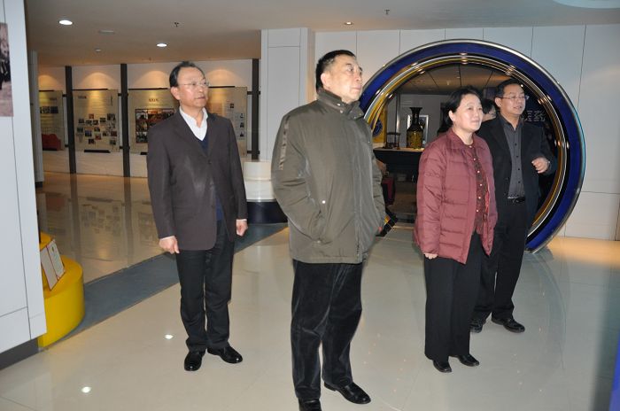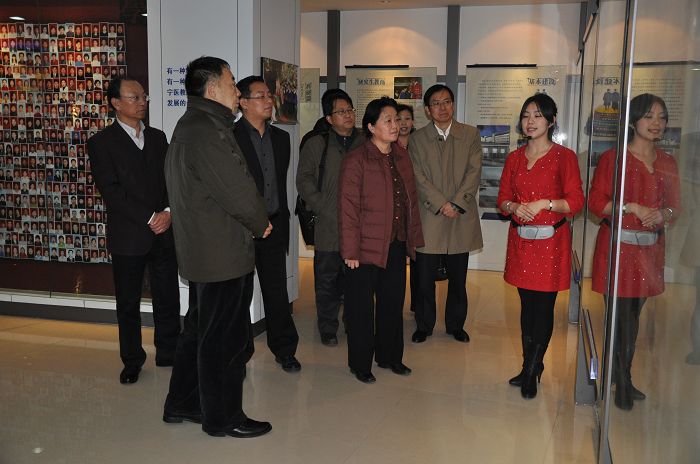 全区高校“为民服务创先争优”活动观摩交流会的领导于2011年11月29日下午在党委书记吴世彩教授的陪同下参观了校史馆