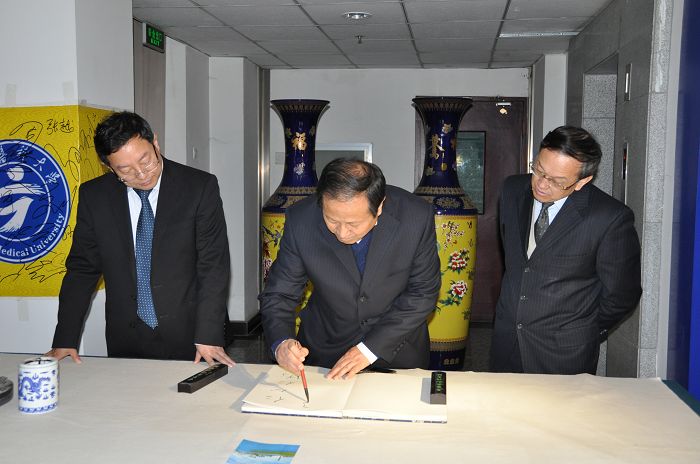 自治区主席王正伟一行20余人在吴世彩书记和孙涛校长的陪同下于2012年5月22日上午参观了校史馆并题词