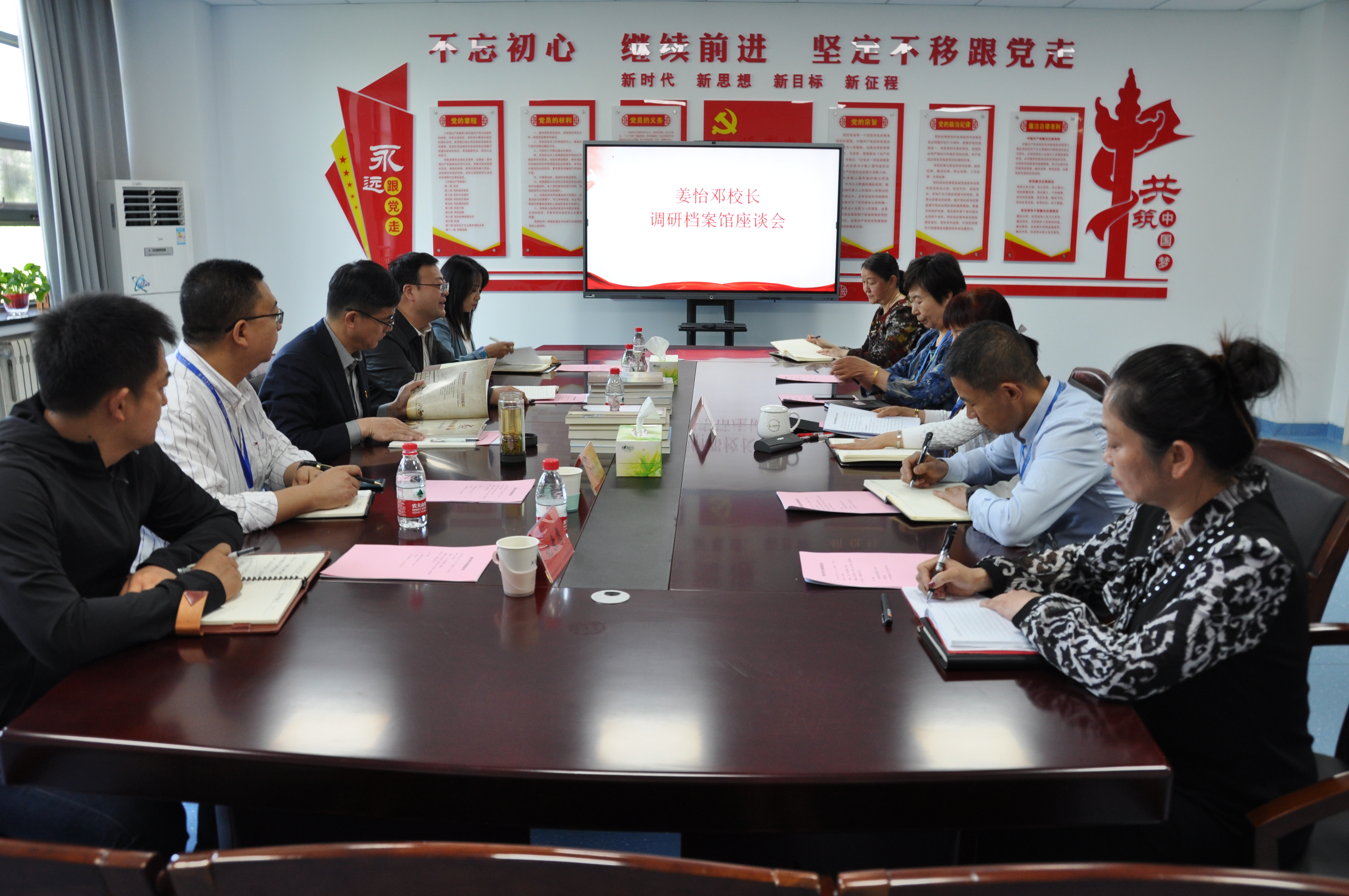 姜校长一行实地查看了库房、实物陈列室、采访室、业务用房和办公用房等,并认真听取了档案馆的工作汇报,全面了解了档案馆的基本情况、档案工作存在的困难和问题,与参会人员进行了交流。