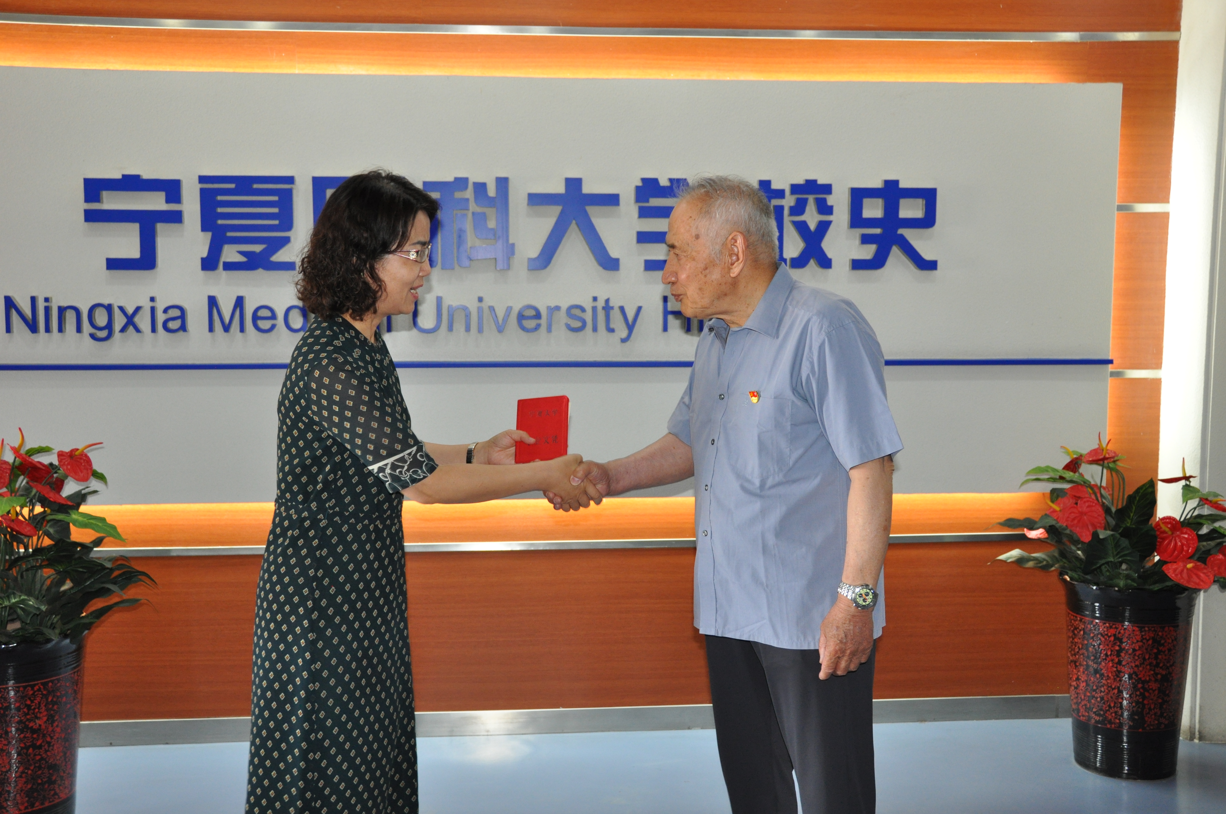 速家震老师在学校副校长刘志宏的陪同下还参观了校史馆,并捐赠了珍藏一辈子的宁医首届毕业证,这也是他第三次给学校档案馆捐赠史料实物,他共捐赠实物41件,相片40张。