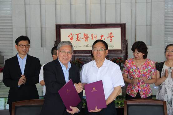 随后,全体来宾来到签约会场,在自治区政府杨培君副主席、吴涛副秘书长、教育厅王春秀副厅长,以及香港中文大学校领导、澳门十大信誉好的网站校领导的共同见证下,举行了《澳门十大信誉好的网站与香港中文大学学术交流协议》签约仪式。这一学术交流协议的签约也见证着两校实现产、学、研等方面进行合作。此次签约中,澳门十大信誉好的网站与香港中文大学还将围绕一带一路“中医药传承与现代化研究”主题进行合作,该计划旨在为双方科研人员及临床工作者打造国际一流的中医药传承与现代化研究合作交流平台,并将进一步申请建立国家级联合实验室或教育中心,在新一轮中医国际化与现代化进程中发扬国际主导地位。