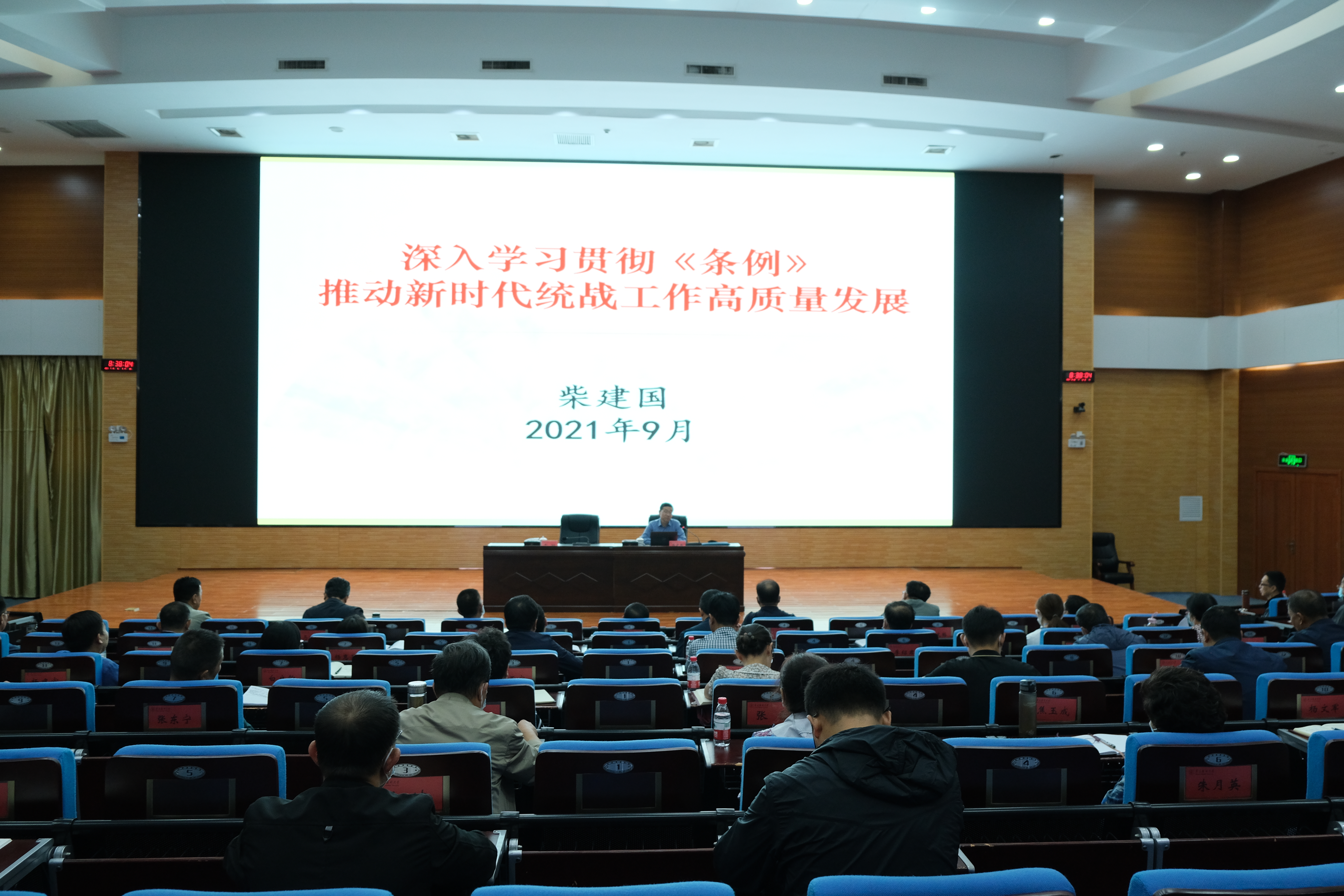 9月18日,为深入学习贯彻《中国共产党统一战线工作条例》和中央民族工作会议精神,推动民族团结进步活动进校园,学校邀请自治区党委统战部副部长柴建国作“深入学习贯彻《条例》,推动新时代统战工作高质量发展”专题讲座。学校各基层党组织书记、统战委员,各民主党派、统战团体班子成员及代表聆听讲座,学校党委副书记牛阳主持讲座。