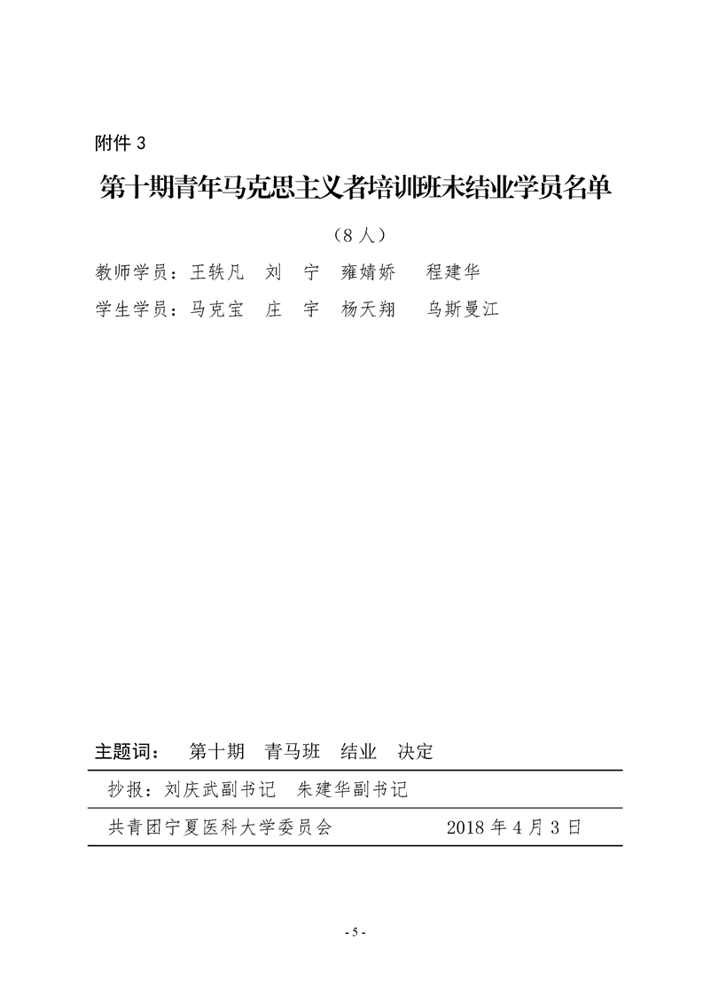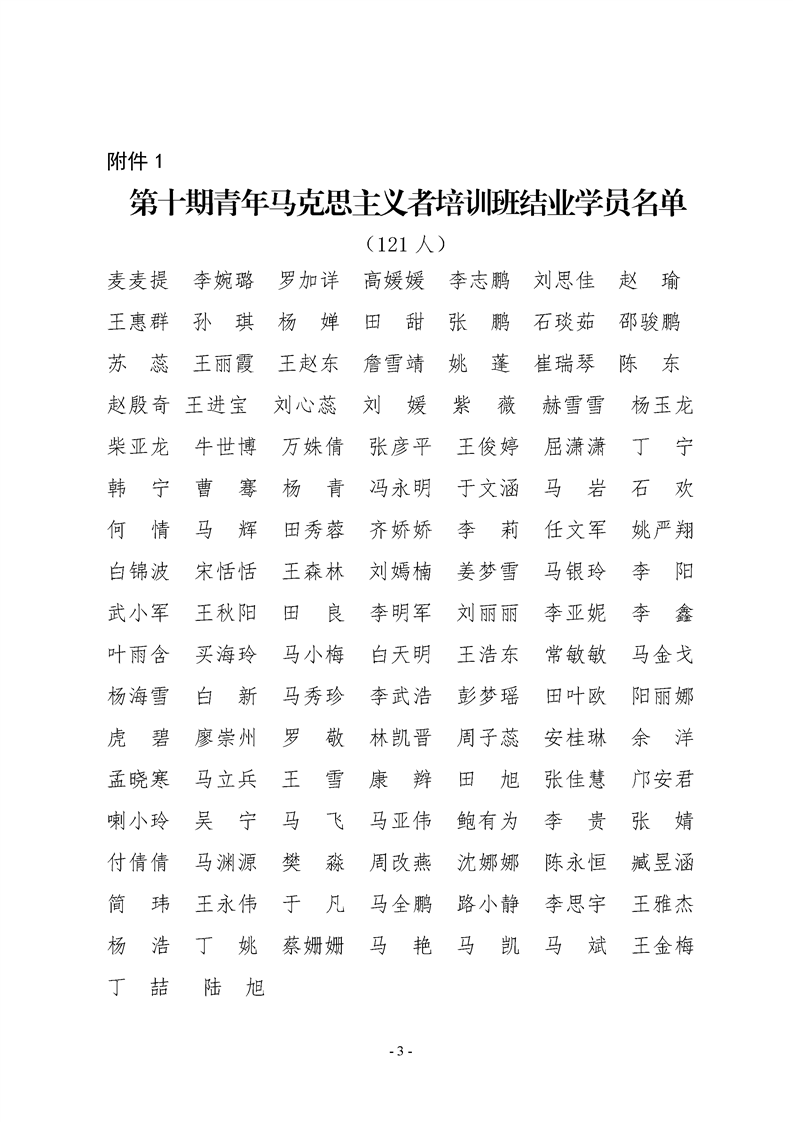 宁医团联字〔2018〕2号 关于准予第十期“青年马克思主义者”培训班马辉等121名学员结业及授予罗加详等23名学员“优秀学员”荣誉称号的决定