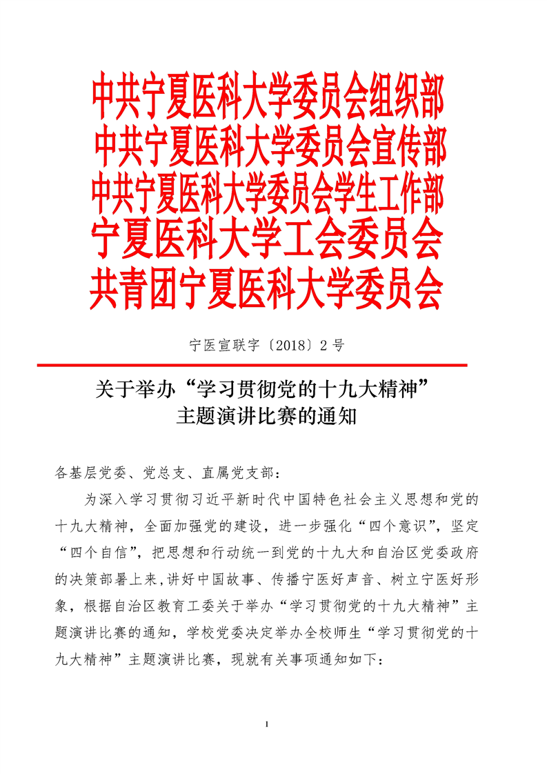 宁医宣联字〔2018〕2号 关于举办“学习贯彻党的十九大精神”主题演讲比赛的通知