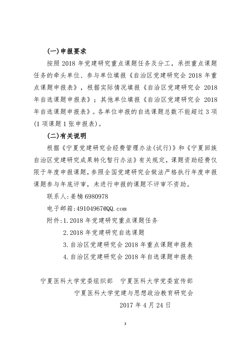宁医宣联字〔2018〕5号 关于组织申报自治区2018年党建研究课题工作的通知