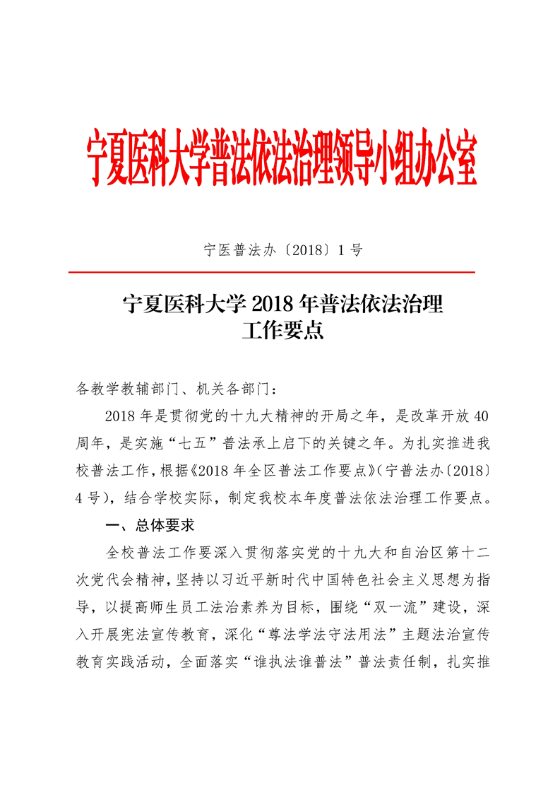 宁医普法办〔2018〕1号 澳门十大信誉好的网站2018年普法依法治理工作要点