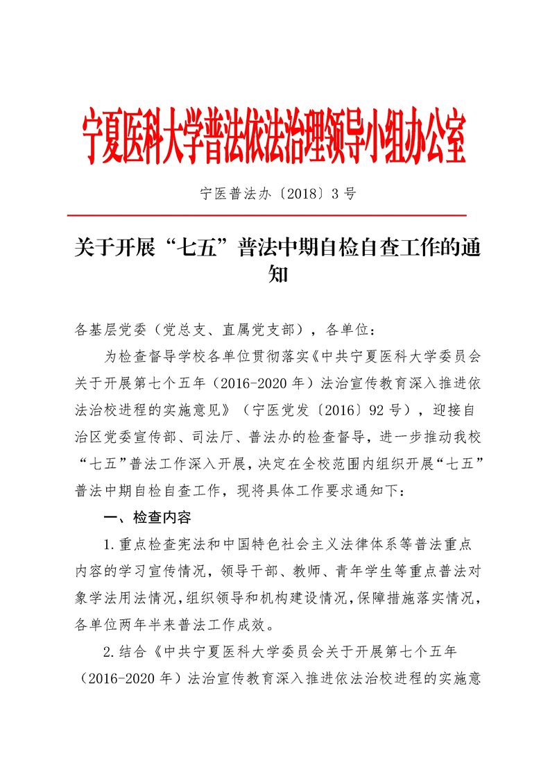 宁医普法办〔2018〕3号 关于开展“七五”普法中期自检自查工作的通知