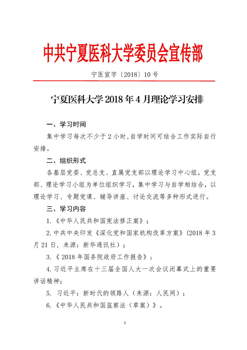 宁医宣字〔2018〕10号 澳门十大信誉好的网站2018年4月理论学习安排
