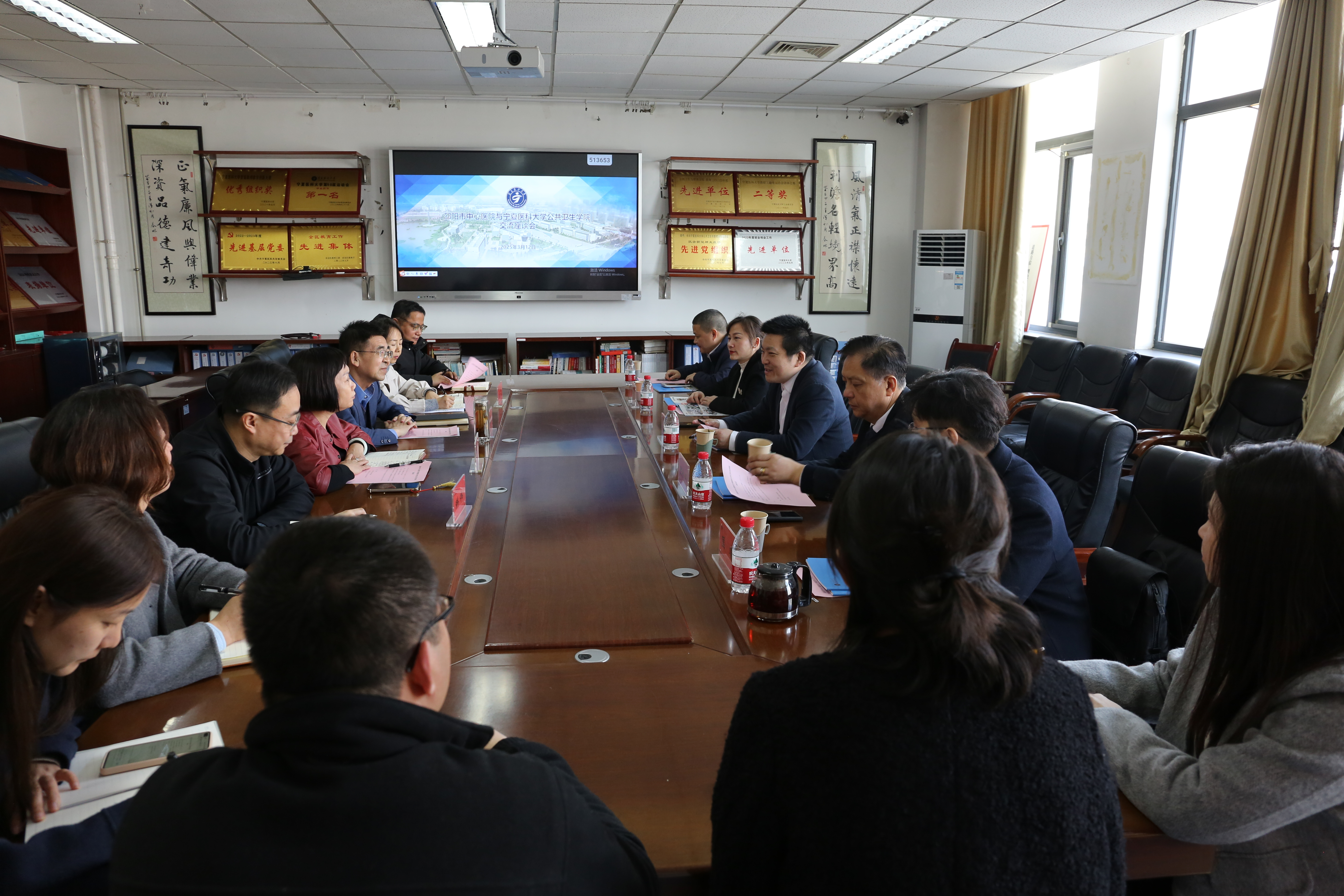 3月13日上午,邵阳市中心医院院长郑核、党委副书记陈毅明一行5人来访学校期间,来到公共卫生学院座谈交流,公共卫生学院班子成员、办公室、研究生办主任及学办辅导员参加了座谈,学院党委书记杨惠芳主持座谈会。