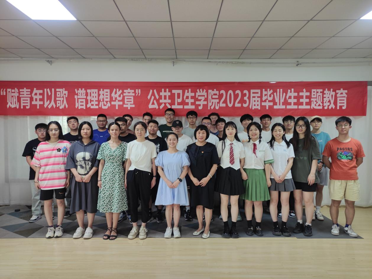 为深入学习党的二十大精神,全面学习贯彻习近平新时代中国特色社会主义思想,扎实落实立德树人根本任务,做好毕业生思想政治教育工作,教育引导毕业生树立正确思想认识和价值取向,以良好的精神风貌走出校园、迈入社会。6月16日,公共卫生学院在臻善楼二楼职工之家面向2023届全体毕业生开展“赋青年以歌 谱理想华章”主题教育活动。学院党委书记杨惠芳、学院2023届全体毕业生参加会议。