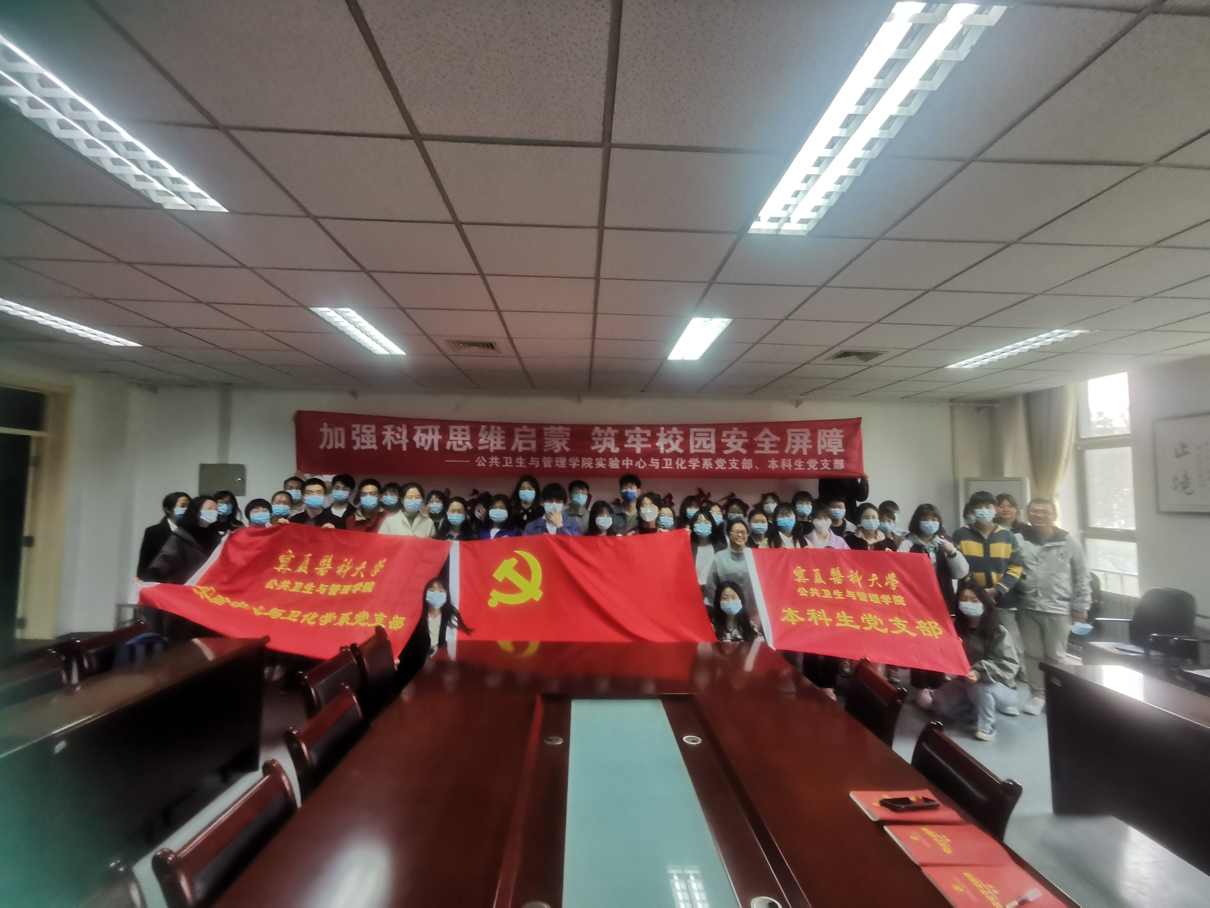 4月27日下午,公共卫生与管理学院实验中心与卫生化学系党支部和本科生党支部联合开展“加强科研思维启蒙,筑牢校园安全屏障”主题党日活动,共有54名师生党员参加此次活动。