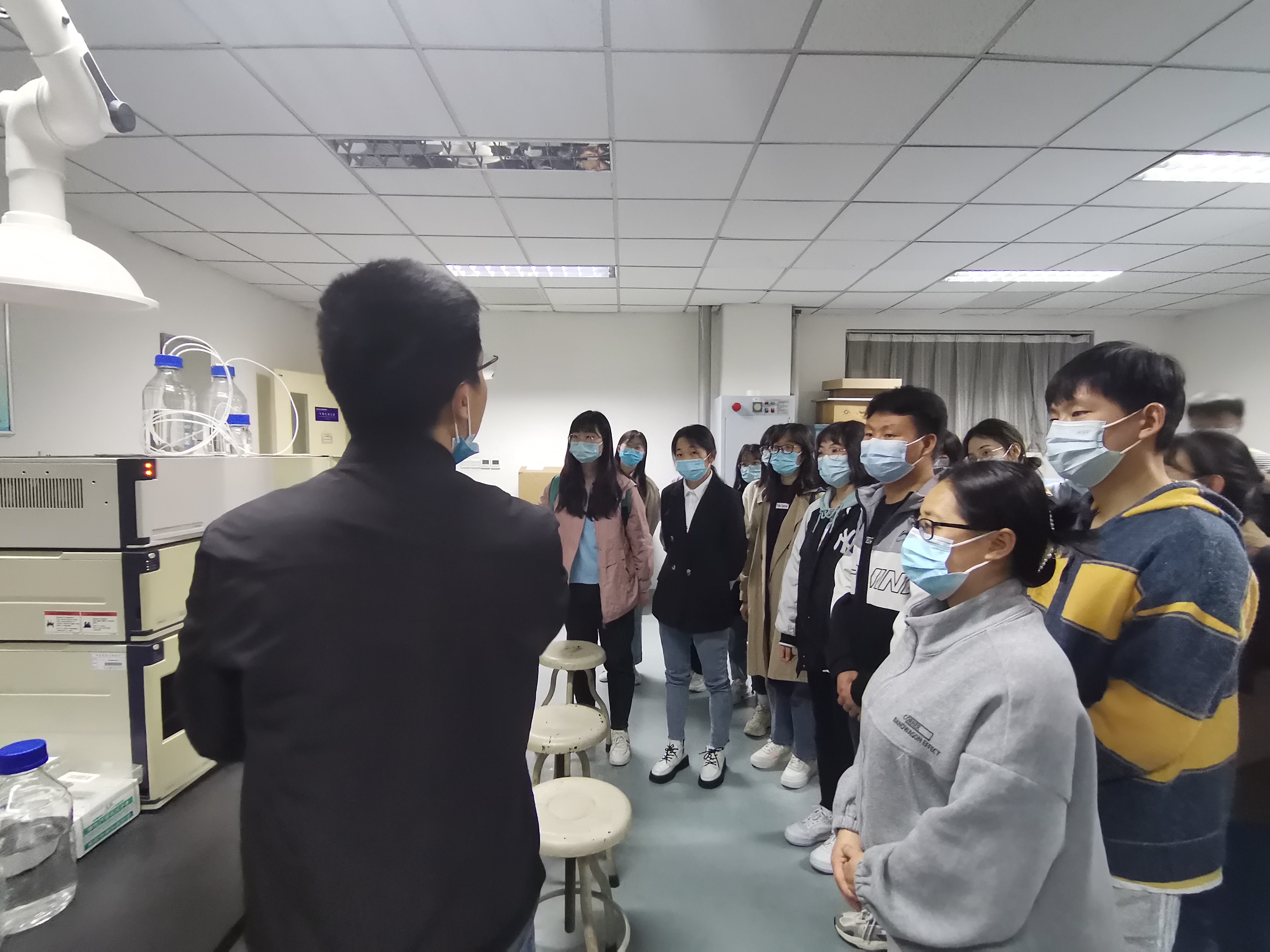 活动伊始,支部书记谷耀华同志与袁立方同志分别介绍了实验中心与卫生化学系党支部和本科生党支部的基本情况。学生党员王亚强从国家安全、校园安全、实验室安全三个方面与大家进行了安全知识分享。随后,谷耀华同志带领大家参观了学院实验室,介绍实验室的现有仪器,并讲解了实验室安全知识、管理和检查的各项规范。