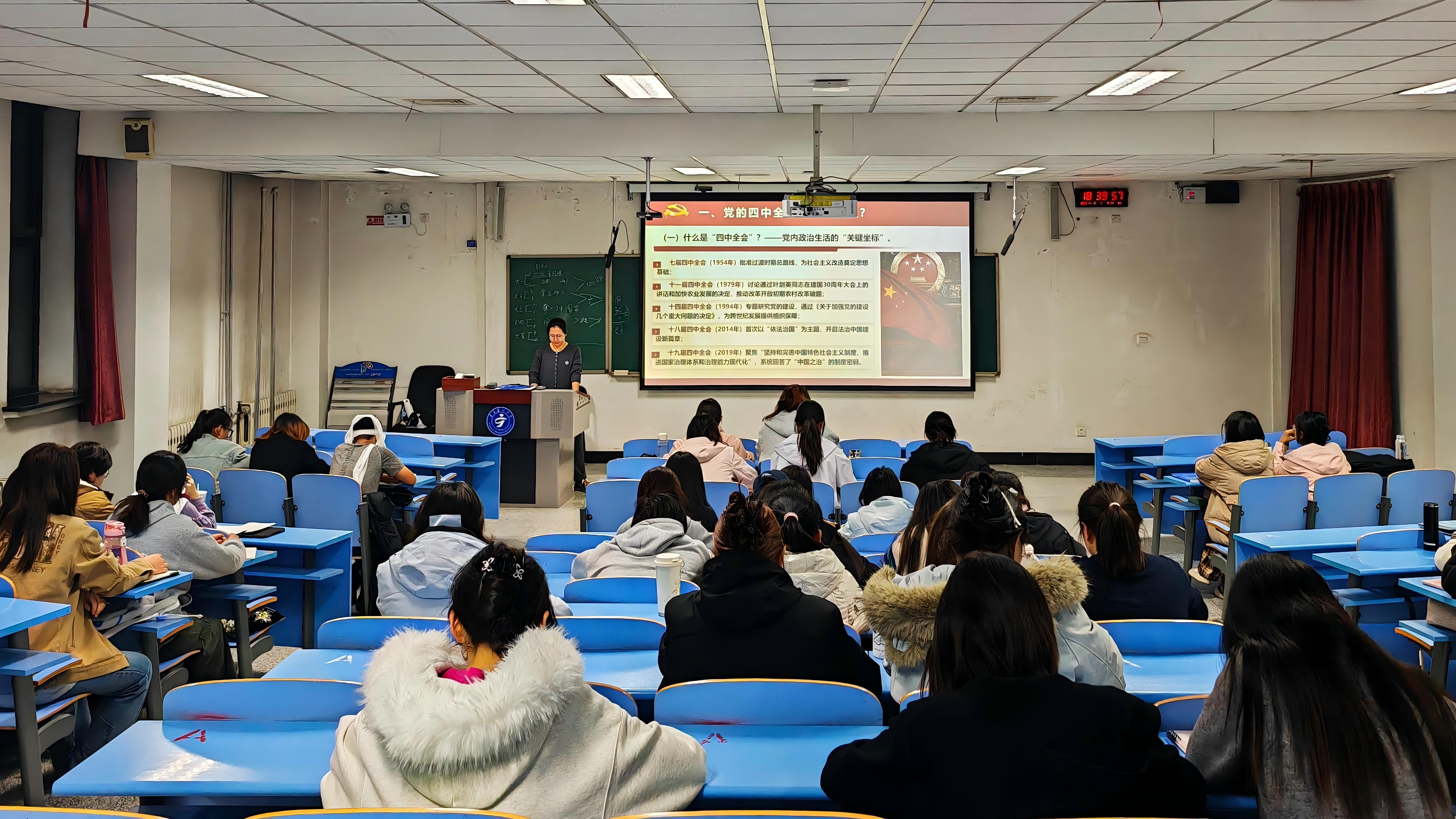 11月3日,学院党委副书记李婉璐专题讲解党的二十届四中全会精神,围绕全会核心部署,结合理论内涵与实践要求,从“四中全会的核心内涵”“‘十五五’规划的战略考量”“‘十四五’时期发展成就”“全会擘画的未来蓝图”四个维度展开解读,通过梳理逻辑脉络、阐释理论要点,帮助入党积极分子清晰把握全会精神实质,深化对党的最新理论成果的认知,为后续学习奠定了思想基础。