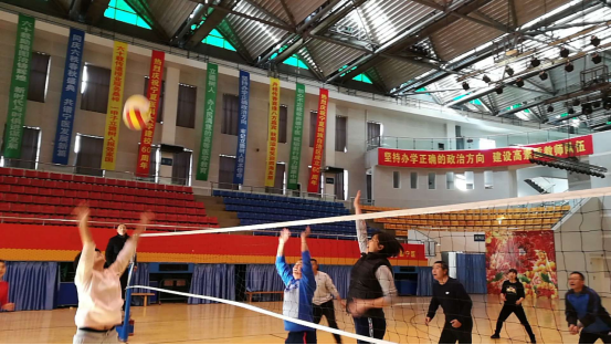 在2019年即将到来之际,体育部分工会于2018年12月29日下午在雁湖校区体育馆组织了全体教职工“凝心聚力 迎新年”活动。开展了结合专业特点、具有专业特色的足球、篮球、排球等球类活动,以及棋牌、齐心协力等趣味运动竞赛,同时还邀请了退休老教师共同参加了活动。期间,每位教职工踊跃参与、团结协作,比赛现场气氛热烈、欢声笑语,起到了锻炼身体、增进友谊、健康身心的目的,增强了干部职工的凝聚力和向心力。
