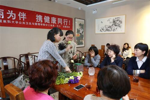 3月7日下午,公共卫生与管理学院分工会组织全体女职工开展以“与美丽为伴,携幸福同行”为主题的健康教育、插花、茶艺知识学习活动,庆祝“三八”国际妇女节。