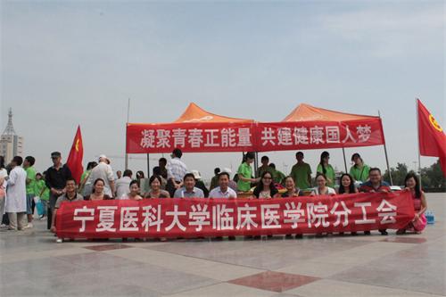 2013年7月11日,临床医学院分工会与学院2010级80余名学生携手共赴贺兰县人民广场,开展以“凝聚青春正能量,共建健康国人梦”为主题的“筑梦贺兰县”社会实践活动。