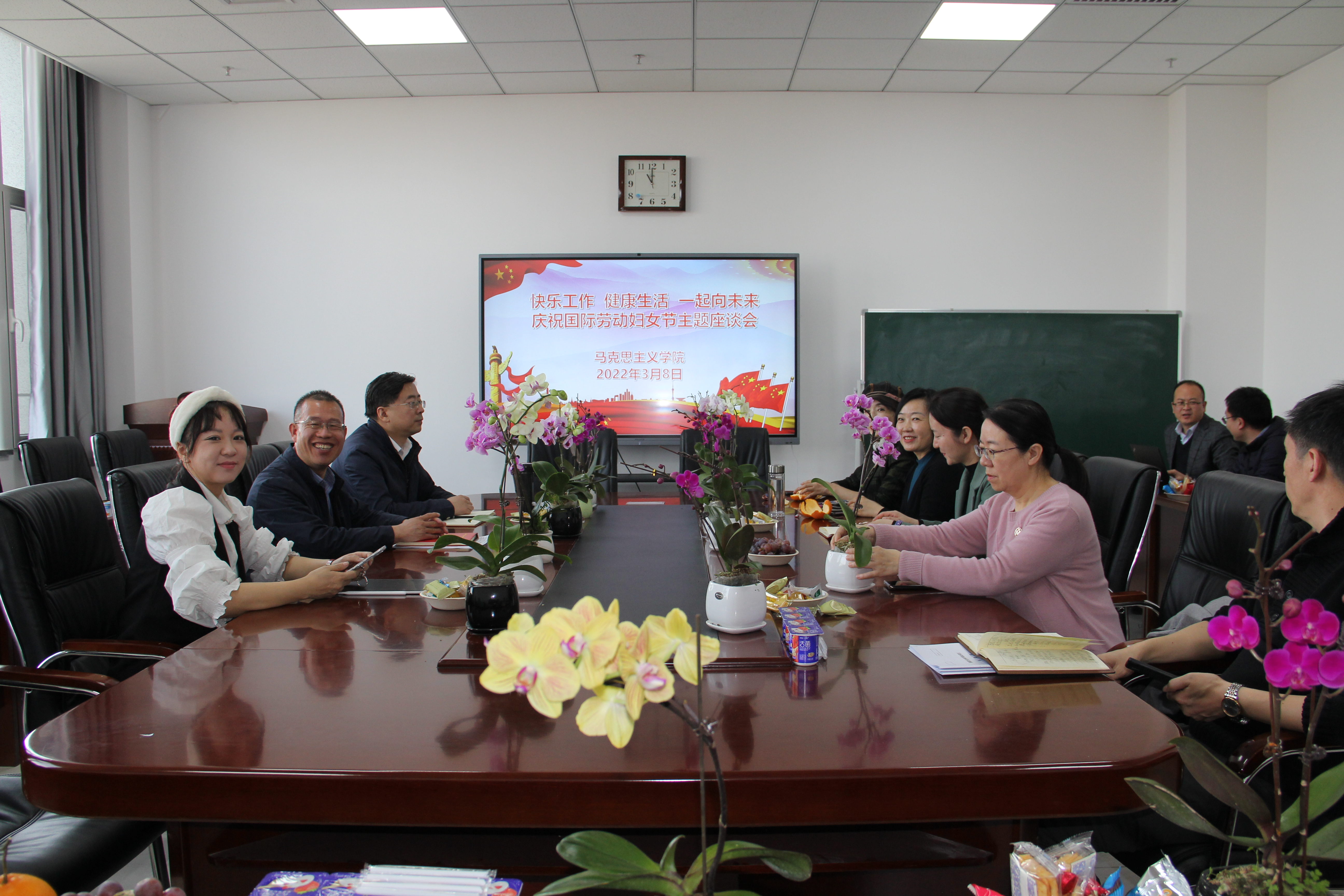 为庆祝第112个国际妇女节的来临,响应学校工会关于开展“强国复兴有我--巾帼心向党 喜迎二十大”为主题的“三八”妇女节庆祝活动号召,马克思主义学院于3月8日举办以“快乐工作 健康生活 一起向未来”为主题的座谈活动。学院工会主席、副院长何佳洁主持座谈会。