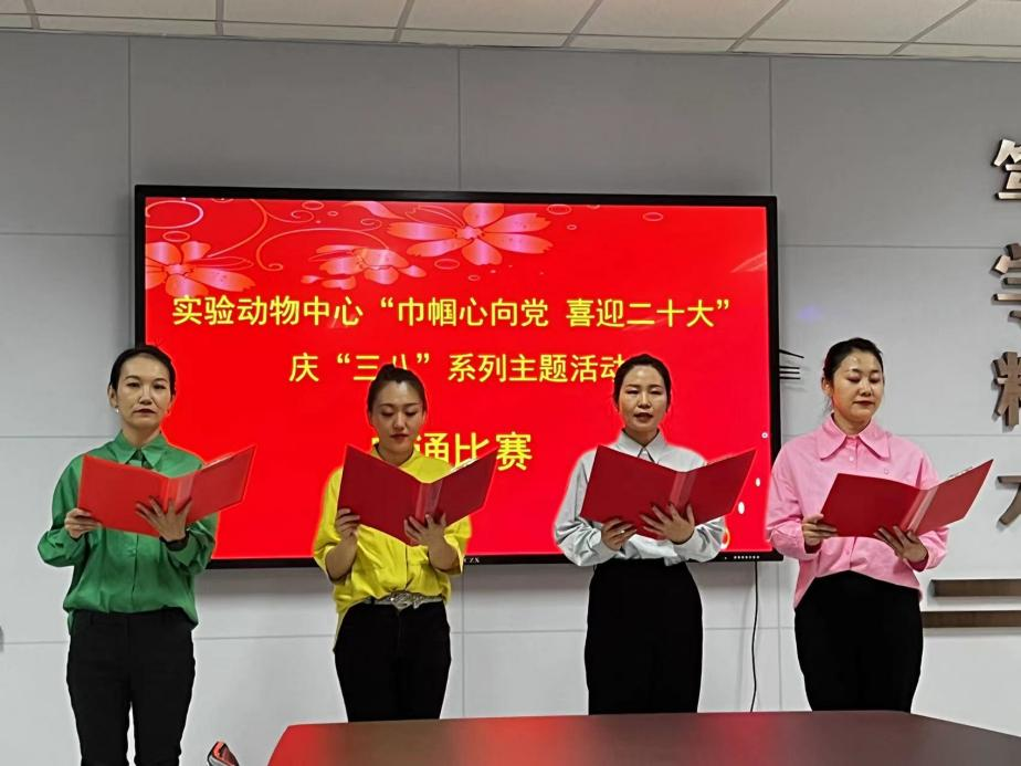 在春回大地,鸟语花香的3月,我们迎来了第112个国际妇女节,实验动物中心分工会为了喜迎学校党代会,献礼二十大,感恩党的领导,感恩社会主义光辉照耀,也为了丰富广大女职工的节日氛围,活跃职工的生活,展现我中心女职工风采,更好团结促进女职工向着学校事业发展更高目标迈进,3月29日下午举办了庆“三八”系列主题活动之朗诵比赛,本次朗诵比赛由马建斌副主任主持。马主任首先对本次活动的开展给予了大力支持和美好的期待,并向中心女职工表达了节日的衷心祝愿。