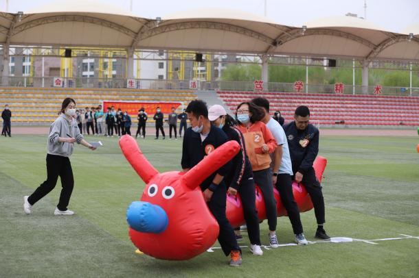 本次活动共有“旱地龙舟”“击鼓颠球”“三分钟‘8’字绕环跑动跳绳”“有轨电车”“勇往直前”等5项游戏,均以小组对决形式进行。比赛中,场上参赛队员团结协作、奋力拼搏,场下观众高声呐喊、加油鼓劲。欢呼声、助威声、欢笑声点燃了整个体育场。虽然初春的天气略有寒意,但大家高涨的热情将这丝寒冷一扫而尽。