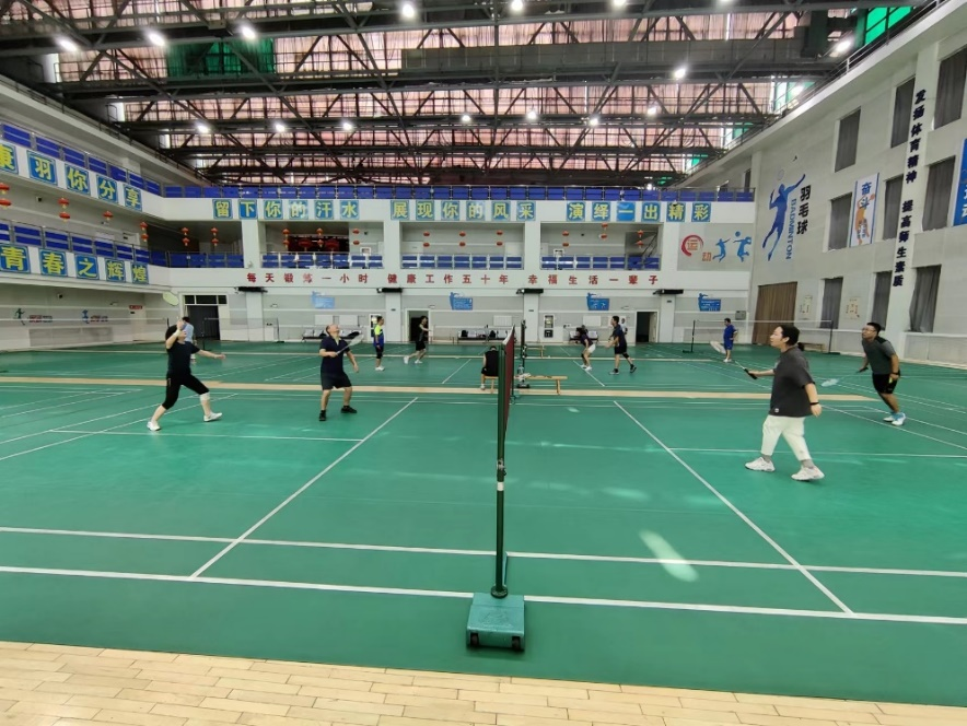 赛场上,比赛气氛热烈而紧凑。老师们穿着轻便的运动装奔跑在赛场上,个个打得酣畅淋漓,直呼以后要坚持每周都来洒洒汗。虽然汗水湿透了衣衫,但比赛的热情伴随着欢呼声、笑声响彻了整个球馆。最终裴秀英和马文智老师获得双打冠军,刘心蕊老师获得女单冠军,马文智老师获得男单冠军。