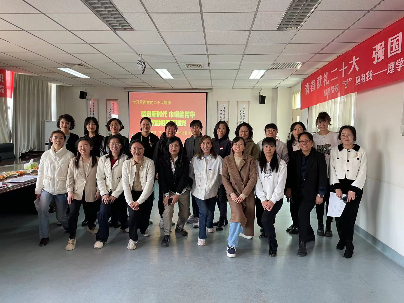 为深入学习贯彻党的二十大精神,庆祝“三八”国际妇女节,丰富教职工文化生活 ,提高文化素养,更好地展现学院女职工风采,3月10日上午,理学院在厚生楼举办“奋进新时代 巾帼绽芳华 歌唱祖国歌唱党”庆祝“三八”国际妇女节主题活动。活动由学院分工会主席白启钧主持,全体教职工参加。