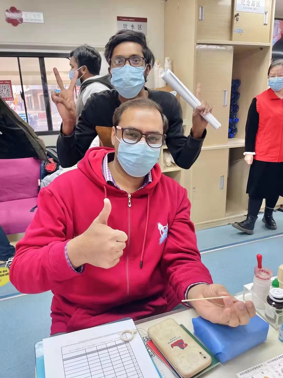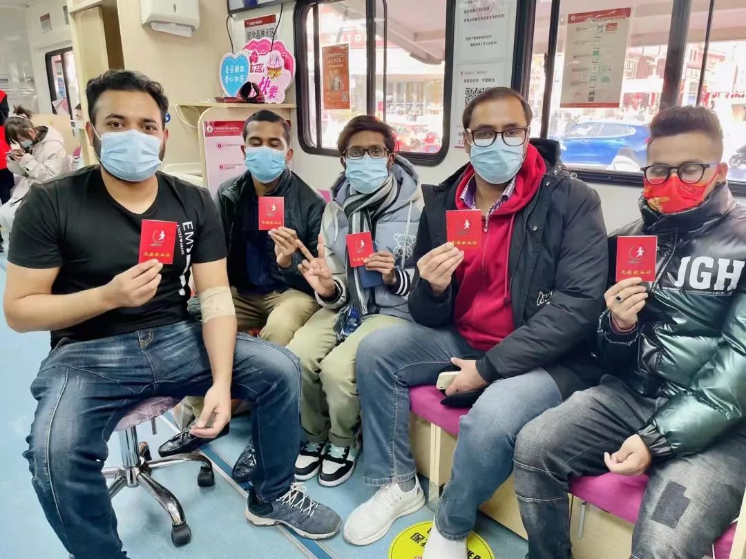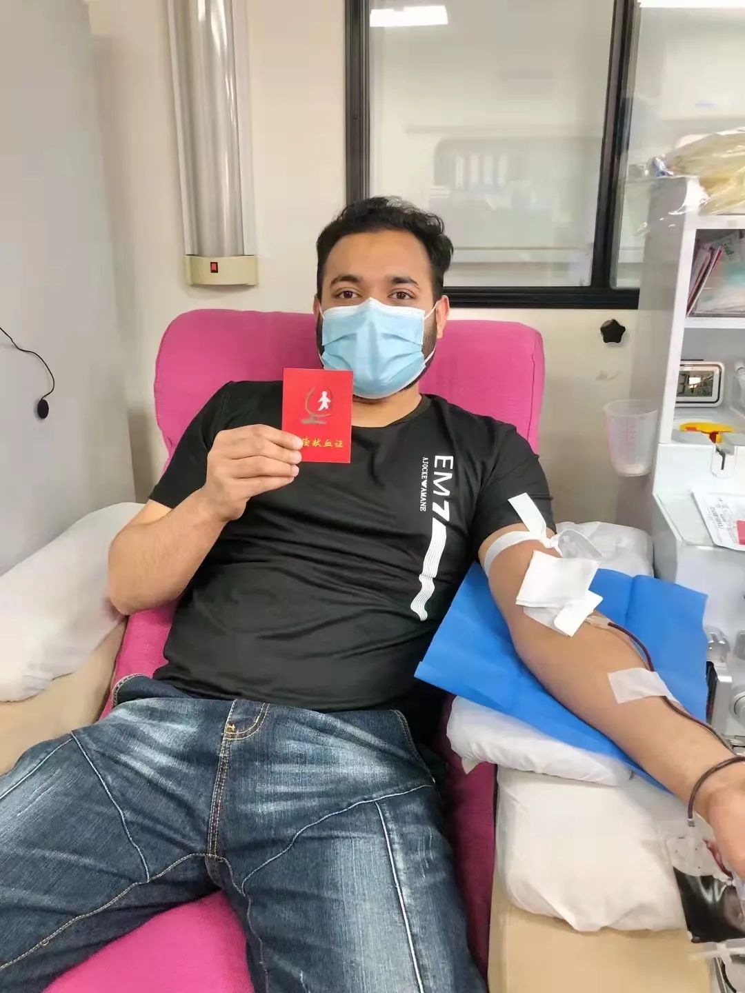 萨德是来自巴基斯坦的一名留学生,他用流利的汉语说道:“这是我第五次在中国献血,我昨天先来到这里询问献血的新要求,然后准备好了所有材料,包括新冠疫苗第三针接种的证明,健康码和行程码,以及献血证。”他为其他同学耐心讲解献血的整个流程,并帮助工作人员做好翻译工作。