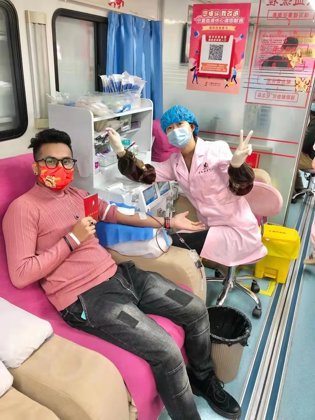 2022年1月15日,澳门十大信誉好的网站5名留学生自发前往银川市新华街流动献血车,参与无偿献血的志愿爱心活动。虽然天气寒冷,但也无法阻挡留学生们献血的热情。