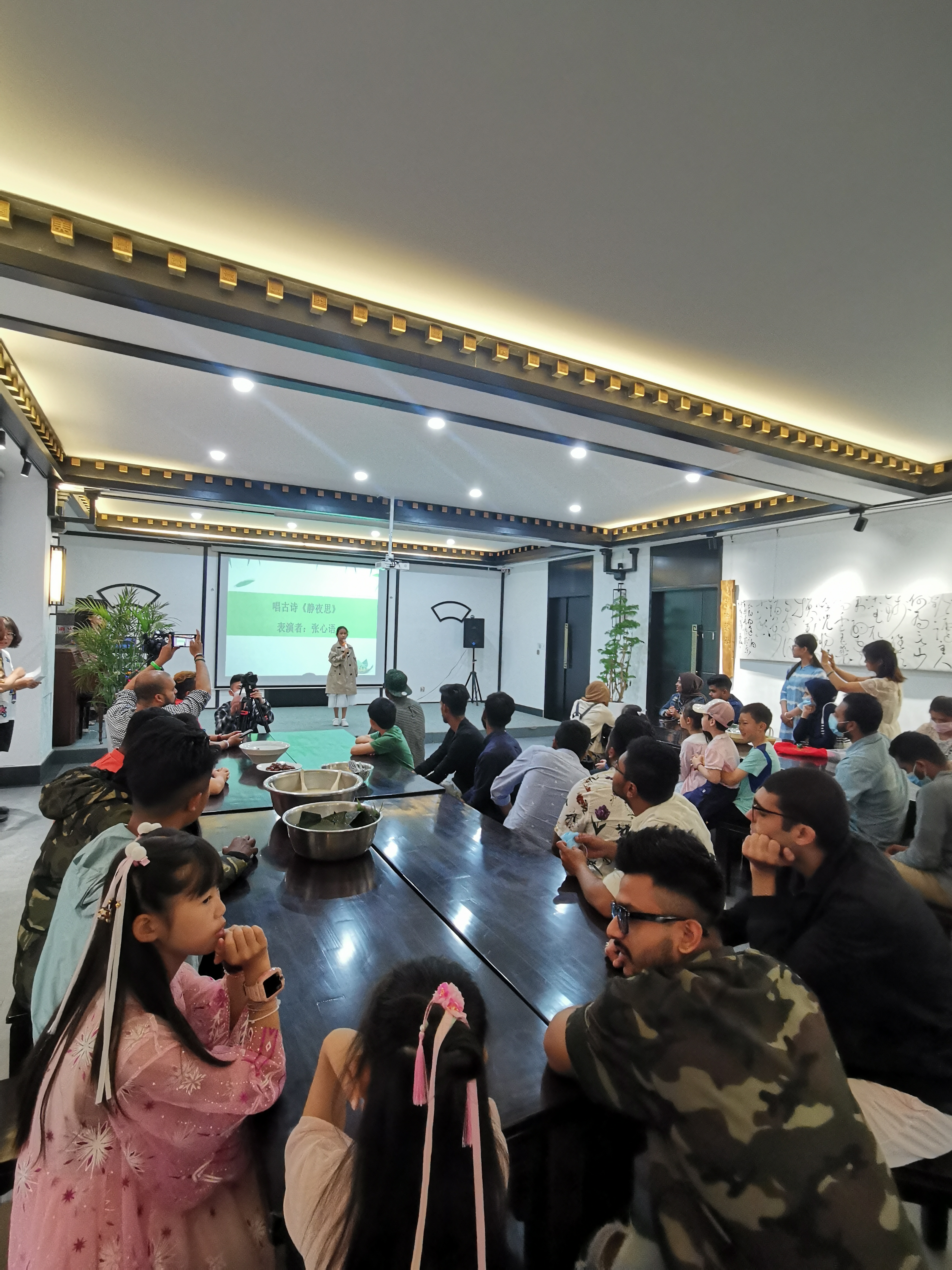 本次活动邀请了10名不同年龄的小学生参加,与留学生一起进行了文艺表演、互动游戏、英语教学、包粽子、缝制香包等一系列活动,大家其乐融融,欢乐满堂。在互动环节中,小学生们为留学生献唱了古诗、朗诵了国学经典、表演了武术,留学生为小学生表演了舞蹈、演唱,进行了英语教学,一起做了游戏,大小朋友不分你我,互相配合、互相关心。