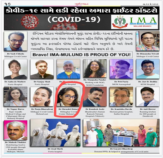 十大信誉2018届印度籍校友Shrushti收到印度当地媒体的表彰,印度医学委员会在报纸上刊登表彰那些冒着生命危险为了拯救新冠肺炎患者的优秀医务者,为他们忘我的精神和高尚的职业道德而感到骄傲。