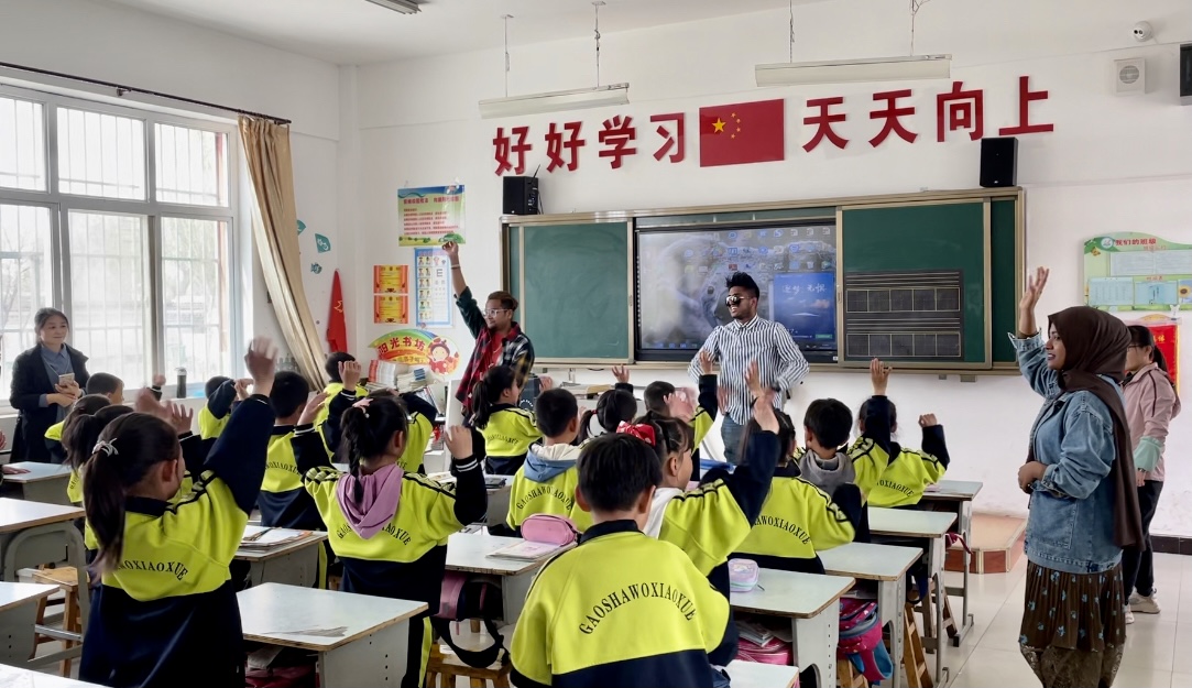 在高沙窝镇中心小学,我院教师和学生志愿者们与校方开展“互动交流”活动。大家分别走进小学生们的课堂,开展了别开生面的英语学习活动。在游戏中提升小学生英语学习兴趣,掌握了简单的英语知识等。在大课间,师生共同参与了踢足球、打篮球、跳大绳、转呼啦圈等活动,大家欢声笑语,其乐融融。学院师生还为孩子们捐赠了跳绳,足球和篮球等文体用品,希望孩子们健康快乐成长。