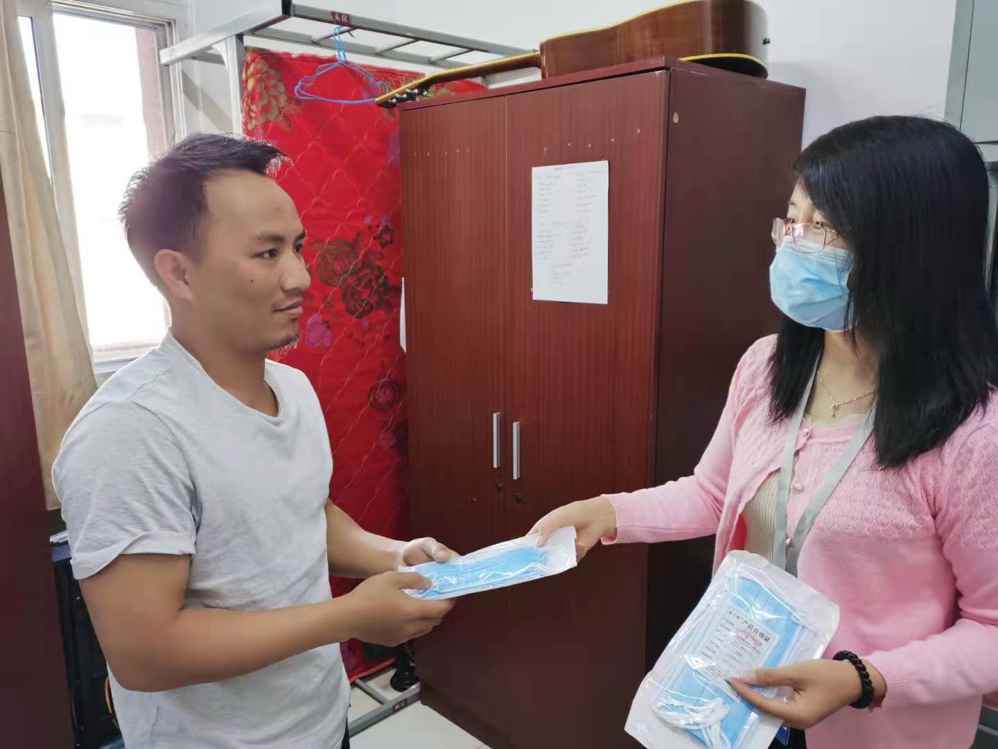 5月12日下午,辅导员开展了宿舍安全大检查。全面、细致地对宿舍卫生、用水用电安全等重点问题进行了排查,对排查出的安全隐患,及时让留学生当场整改,确保宿舍整洁、安全。辅导员们还为留学生发放了口罩,并叮嘱学生注意做好自身防护,杜绝安全隐患。