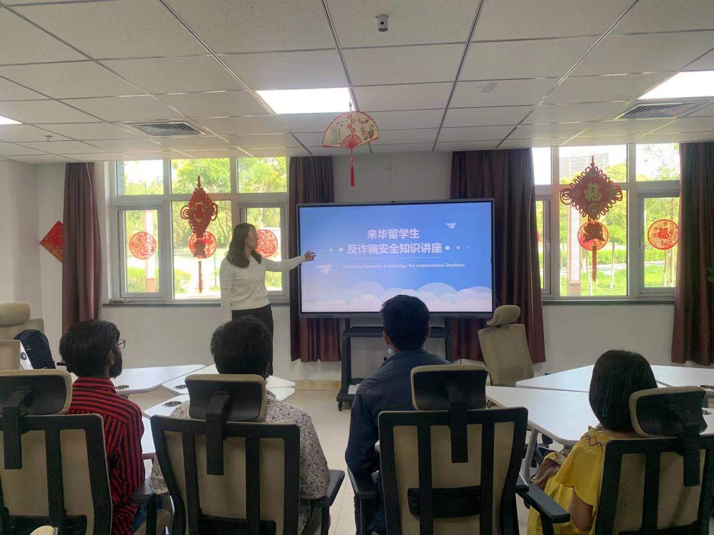 5月12日上午,各年级辅导员通过召开班会,对全体在校留学生进行交通安全、反诈骗、疫情防控等方面的安全教育。辅导员们结合案例和图片,生动展示了各类潜在的安全危险,教育引导留学生从自我做起,提高安全意识,提升安全防范能力。