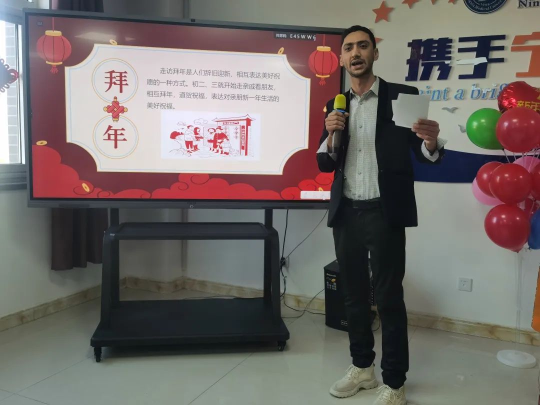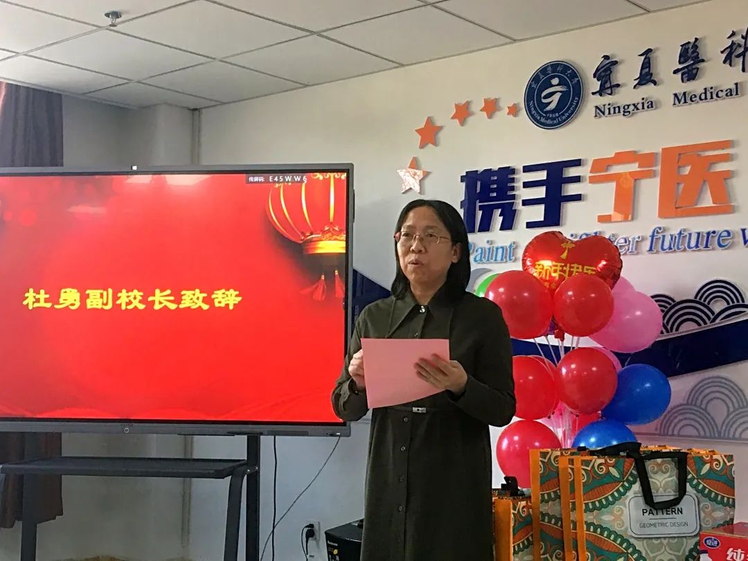 杜勇副校长首先代表学校,向在场所有的留学生和他们的家人们致以节日的问候,祝他们新年身体健康、万事如意,在新的一年更顺利、更平安、能有更多的收获;同时,鼓励留学生们认真学习,多了解中国文化,并在做好个人防疫的同时积极开展体育锻炼,争取早日学成回国后为本国发展多出力,为增进本国与中国的友谊做出贡献。