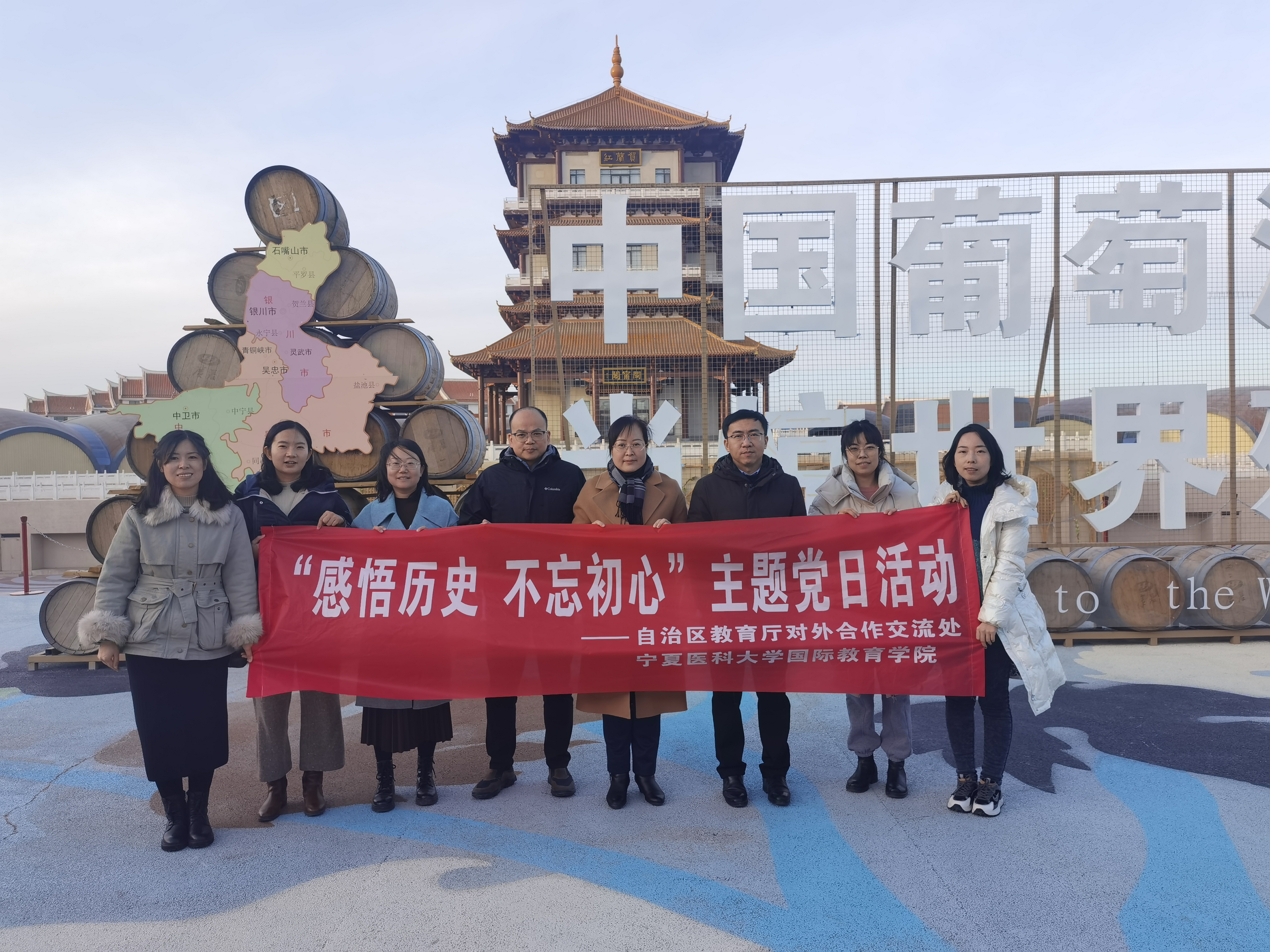 2月14日,国际教育学院直属党支部与自治区教育厅对外合作交流处党支部赴闽宁镇贺兰红酒庄联合开展“感悟历史 不忘初心”主题党日活动。双方部分党员参加了活动。