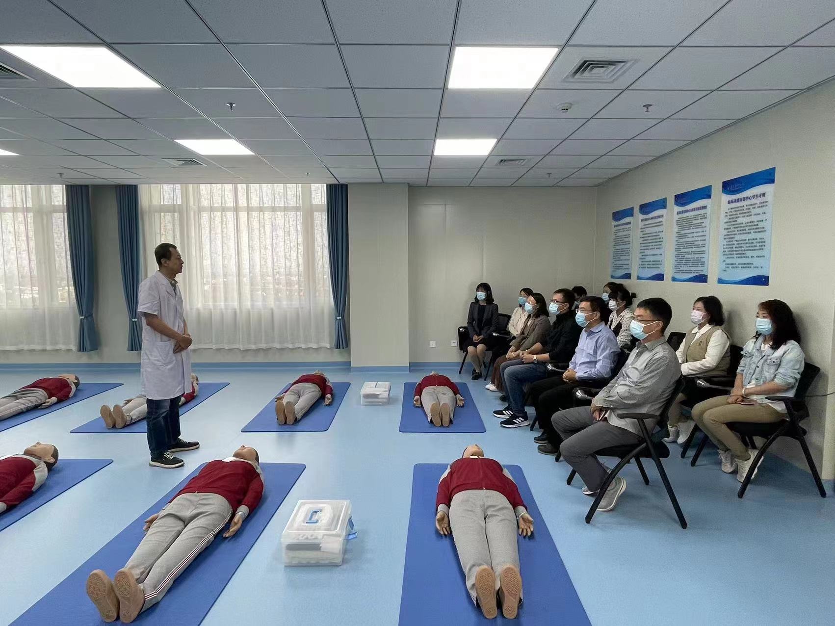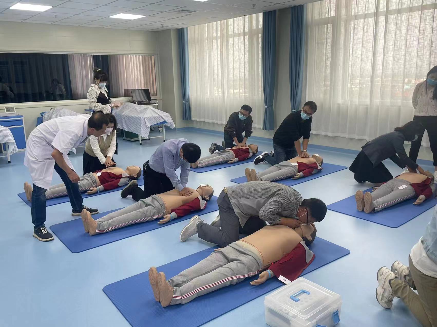在急救实用技能培训的环节中,护理学院外科护理系的侯晓辉老师讲解了急救方法等理论知识,并带领老师们进行了实操训练。受训教师们反复练习,展现了一丝不苟的学习态度和敬业精神,进一步掌握了应对突发事件的能力。