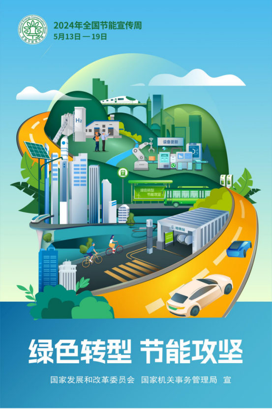 2024 年5月13日至19日是第34个全国节能宣传周,今年活动的主题是“绿色转型,节能攻坚”,同时5月15日也是全国低碳日,主题为“绿色低碳,美丽中国”。