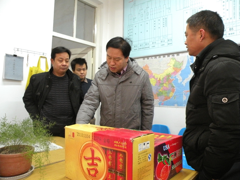 2011年1月1日上午,寒风凛冽,副校长李正直先后来到附属医院锅炉房,双怡校区电工班、锅炉班,新校区电工班、锅炉班、污水处理班和林盛供热站看望并慰问元旦假期期间在岗工作的后勤职工。每到一处,李校长都详细询问节日期间有关后勤服务工作的计划安排和落实情况,向节日期间坚守岗位的后勤职工致以新年的问候,代表学校向大家拜年。