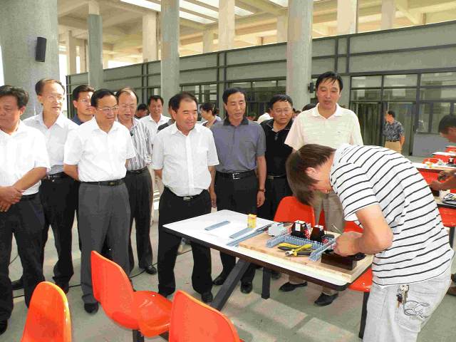 在比赛现场各比赛小组紧张激烈的进行,领导驻足观看,特别是公寓组,每个管理员能指认出每个学生姓名,并能回答出学生的宿舍号和辅导员的名字,得到了领导好评,受比赛气氛的感染副校长李正直亲自为师生展示了刀功,得到了阵阵掌声,学校党委书记齐岳在比赛现场指出,后勤集团要以次此比赛活动为契机,提高职工的岗位技能、增强职工的爱岗敬业意识、形成后勤服务的标准化、品牌化、规范化和制度化;学校校长孙涛强调后勤集团今后要树立岗位标兵和岗位能手,打破大锅饭、开展奖勤罚懒、鼓励多劳多得,形成具有实力、具有竞争力、具有战斗力的后勤保障体系。