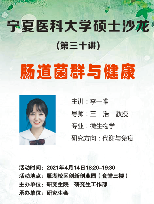 硕士沙龙:肠道菌群与健康——李一唯