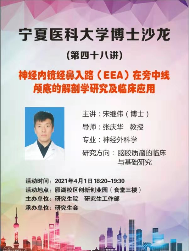 博士沙龙:神经内镜经鼻入路(EEA)在旁中线颅底的解剖学研究及临床应用——宋继伟
