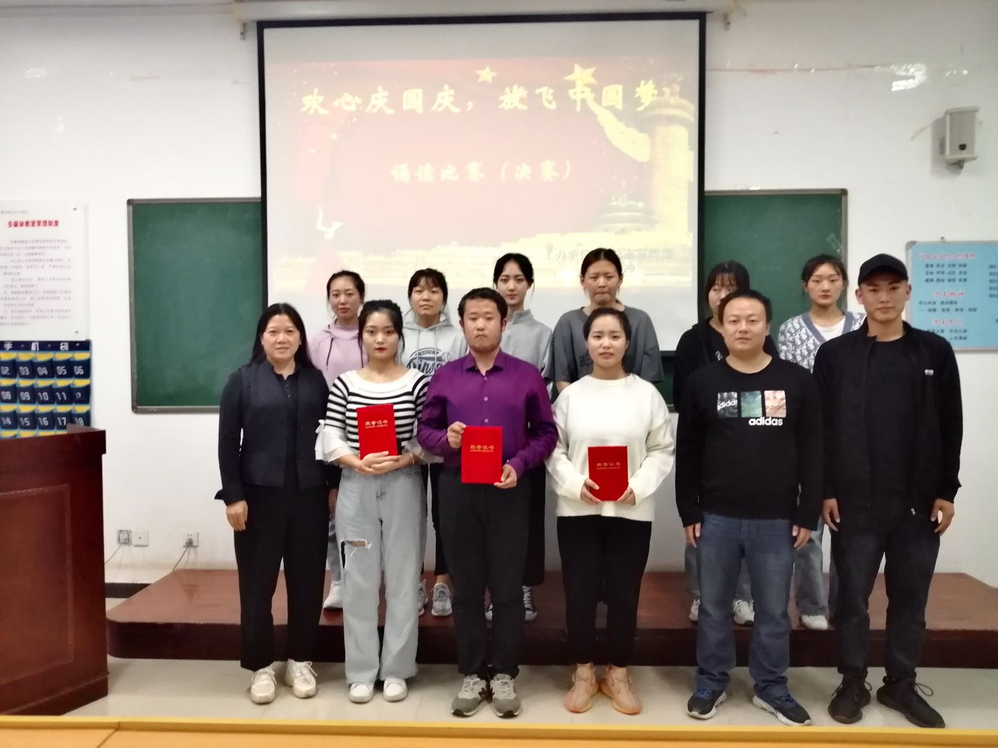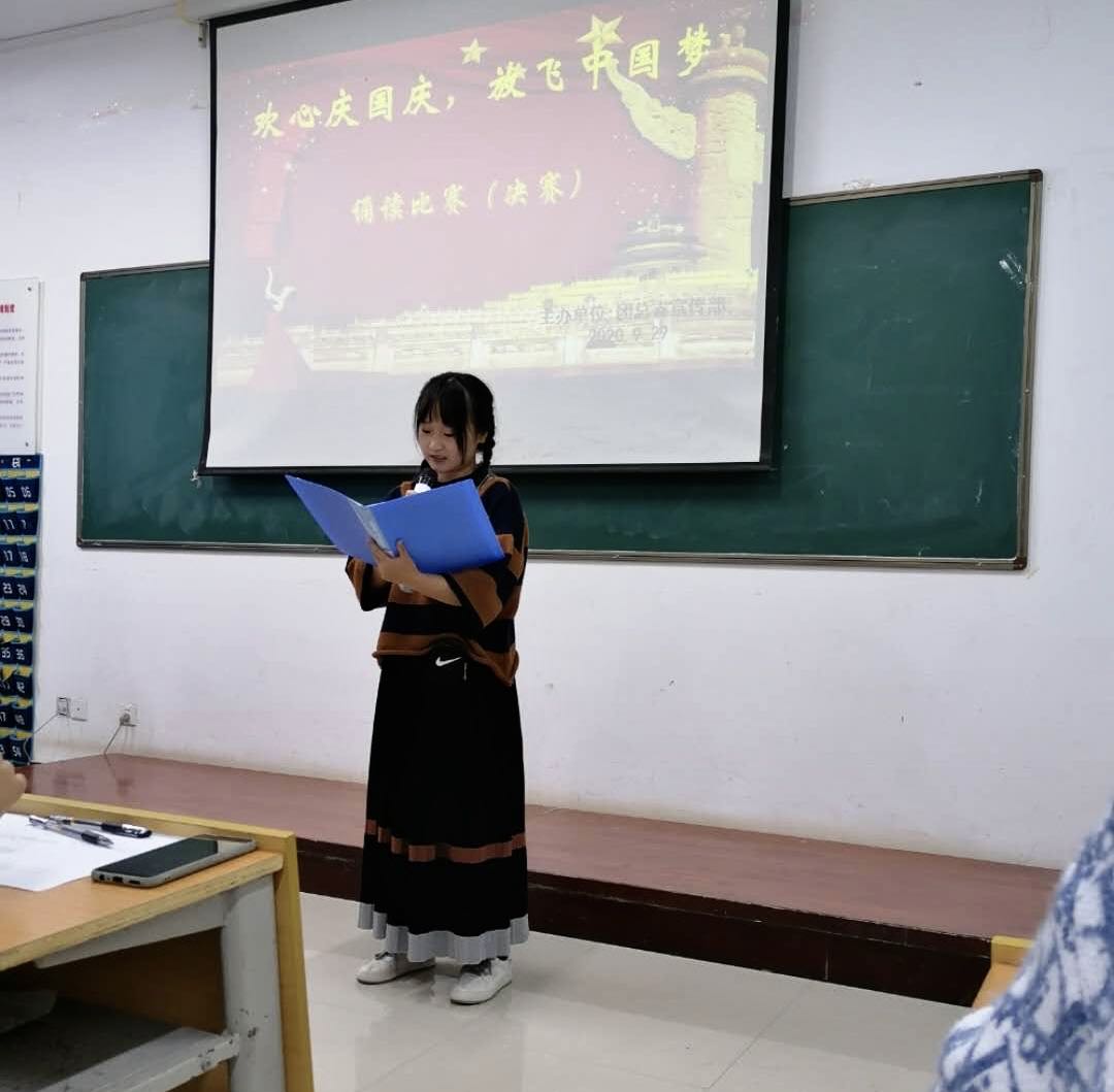 为弘扬中华传统文化,激励广大青年学生坚定信念,牢记美好生活来之不易。9月29日下午beat365中文唯一官网在公共教学楼南楼105教室开展了“欢心庆国庆,放飞中国梦”诵读比赛决赛。beat365中文唯一官网党总支副书记马淑红、办公室主任王剑、团总支副书记杜磊等10人担任评委。50余名学生代表观看了比赛。