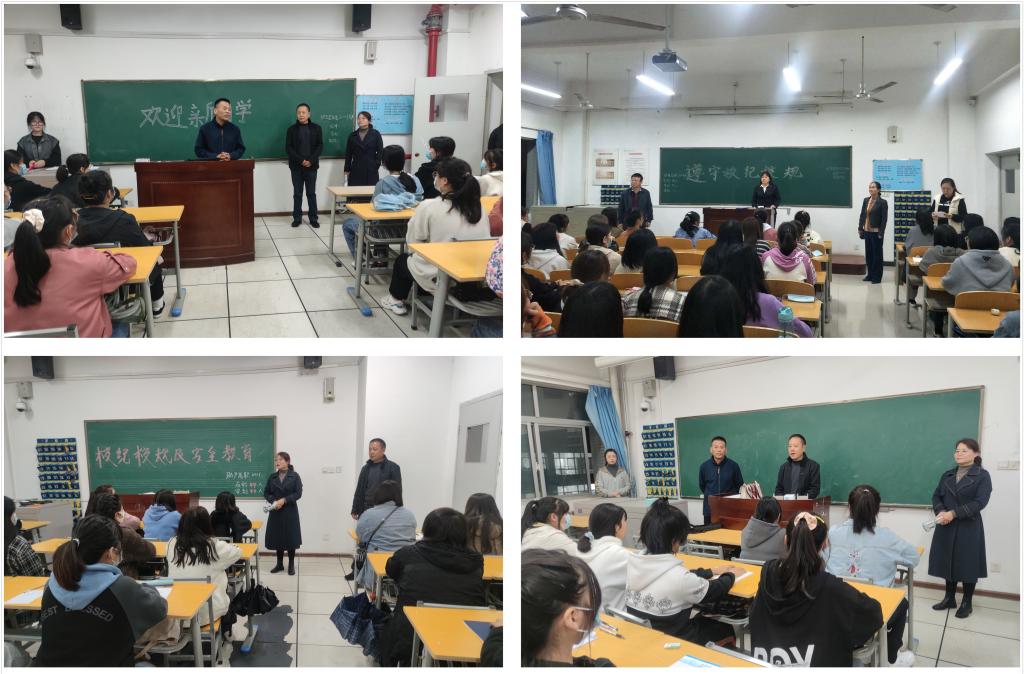 我院党总支书记吴运胜,院长张成,副书记马淑红、李晓乾,副院长任秋爱,办公室主任王剑,教学科科长王媛,学生管理科科长李博,副科长苏建军等分组深入新生教室,与新生亲切交流。吴运胜对新生的到来表示热烈欢迎,他提醒同学们在疫情防控特殊时期保持良好心态,加强防护意识,与同学和谐相处,在新的人生征程中再创新高。张成了解了同学们的住宿、就餐等情况,他希望同学们尽快适应大学生活,遇到困难时,应及时与老师沟通,积极主动汲取知识,不断提升自身能力,提高文化素养。