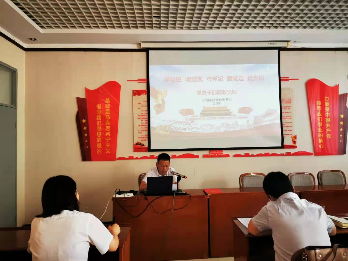 为进一步引导广大党员干部和教职工坚定理想信念、强化纪律意识,根据学校第四个纪律教育学习宣传月活动有关事项通知,6月30日下午3:00,beat365中文唯一官网党总支书记吴运胜和院长张成在第二会议室为全体党员和副科级以上干部讲党课,此次党课由beat365中文唯一官网党总支副书记李晓乾主持。