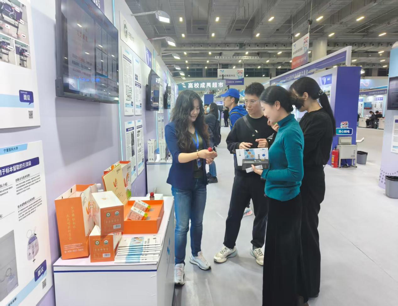 学校医学科学技术研究中心工作人员通过视频展示、资料发放、实物体验等方式,与众多高校、企业和投资机构进行了沟通交流。展示出的“可通气性球囊鼻腔填塞装置”“多功能助行器”等医工结合项目,体现了学校面向临床需求的创新探索,基于西北特色资源开发的“沙棘枸杞原浆”健康产品也受到了参会代表的广泛关注,现场交流气氛热烈融洽。