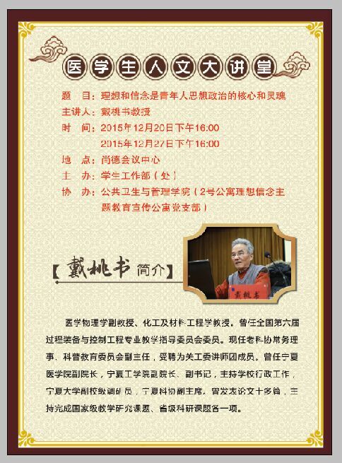 医学生人文大讲堂:理想和信念是青年人思想政治的核心和灵魂——戴桃书教授